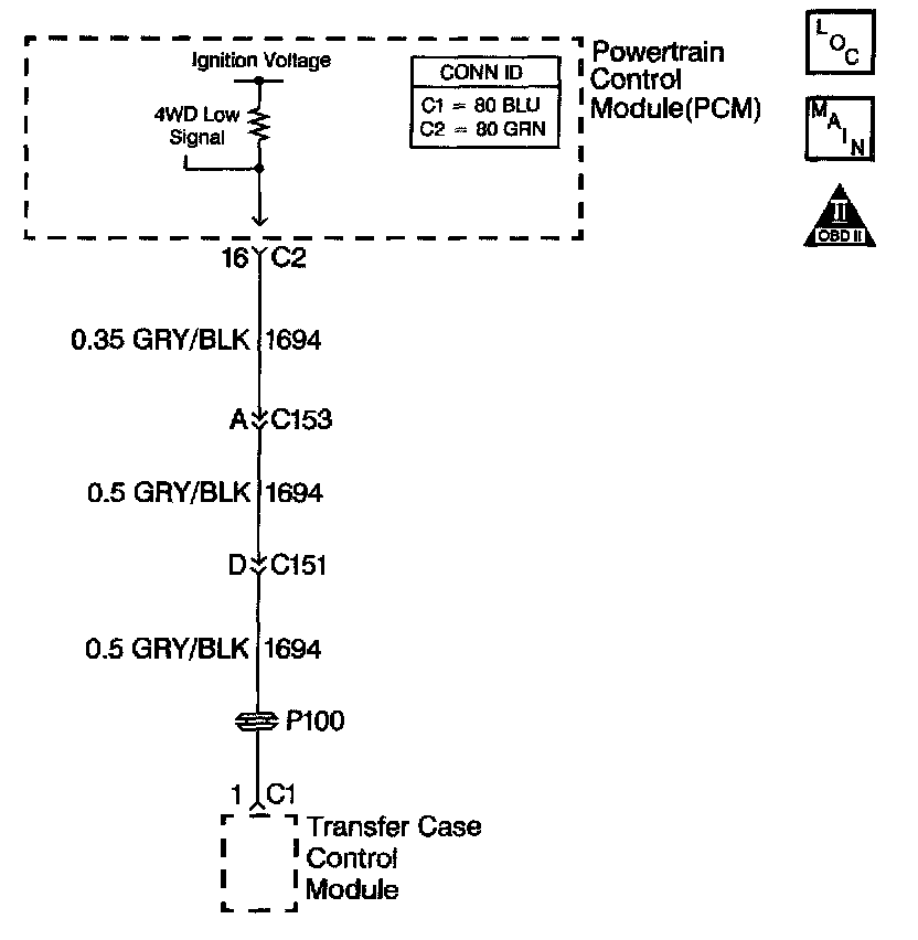 - The PCM commands a normal shift pattern, not a 4WD low shift pattern.