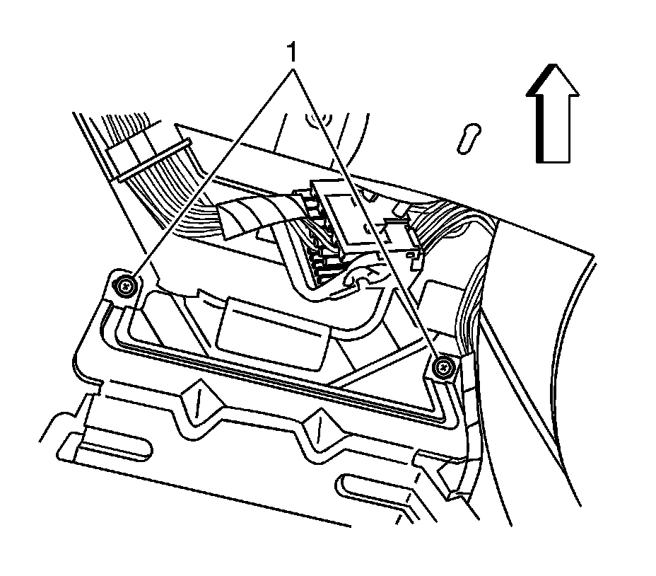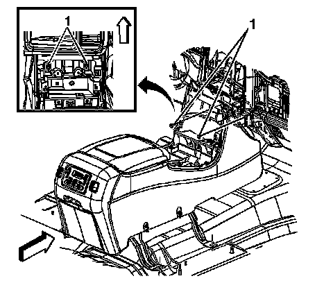 8. Remove the 4 screws retaining the upper console bracket to the lower console bracket. The front 2 screws (1) are shown in the graphic.