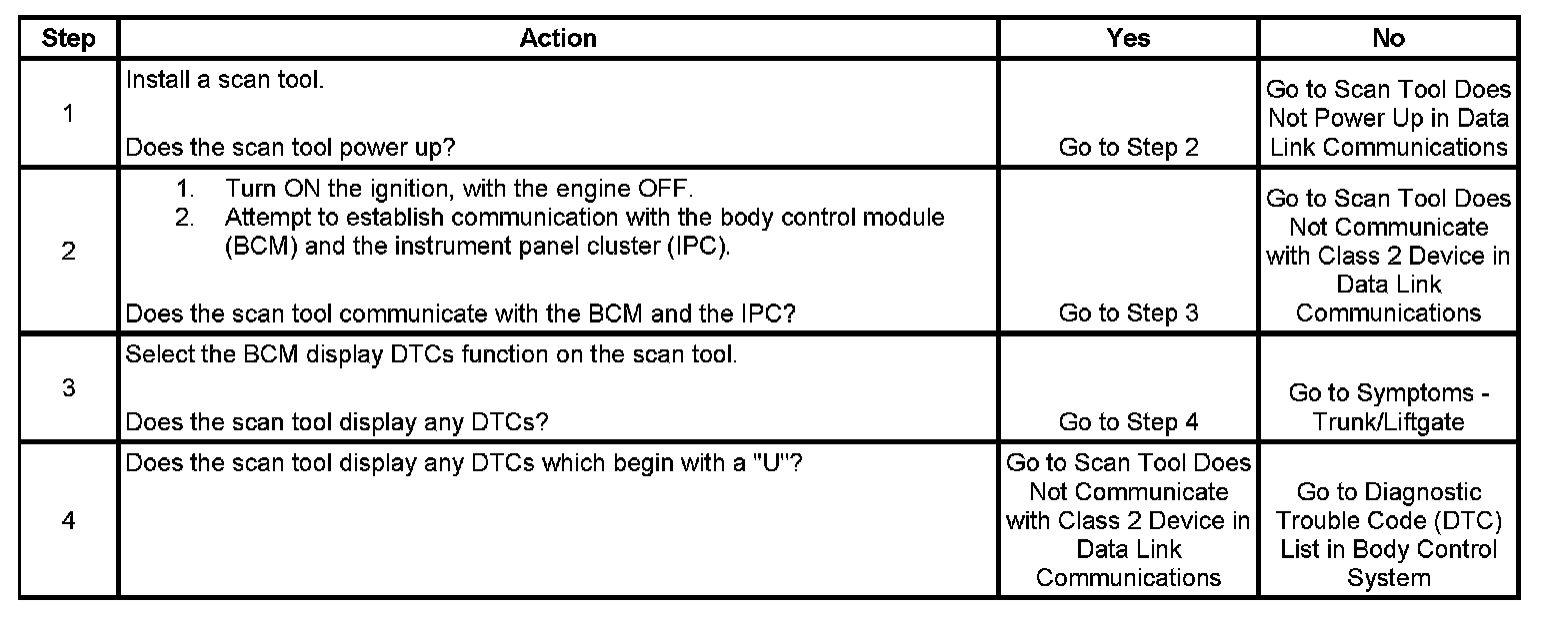 2. Lack of communication may be due to a partial malfunction of the class 2 serial data circuit or due to a total malfunction of the class 2 serial data circuit. The specified procedure will determine the particular condition.