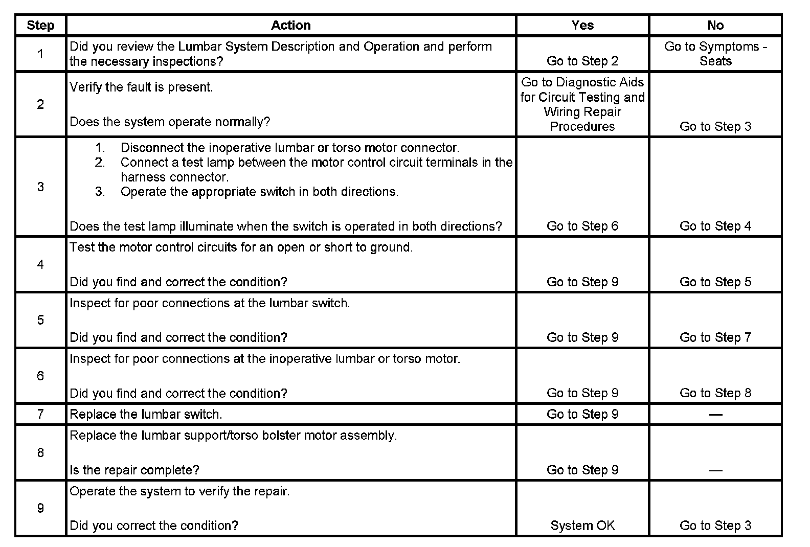 Lumbar Support Inoperative (Without Memory)