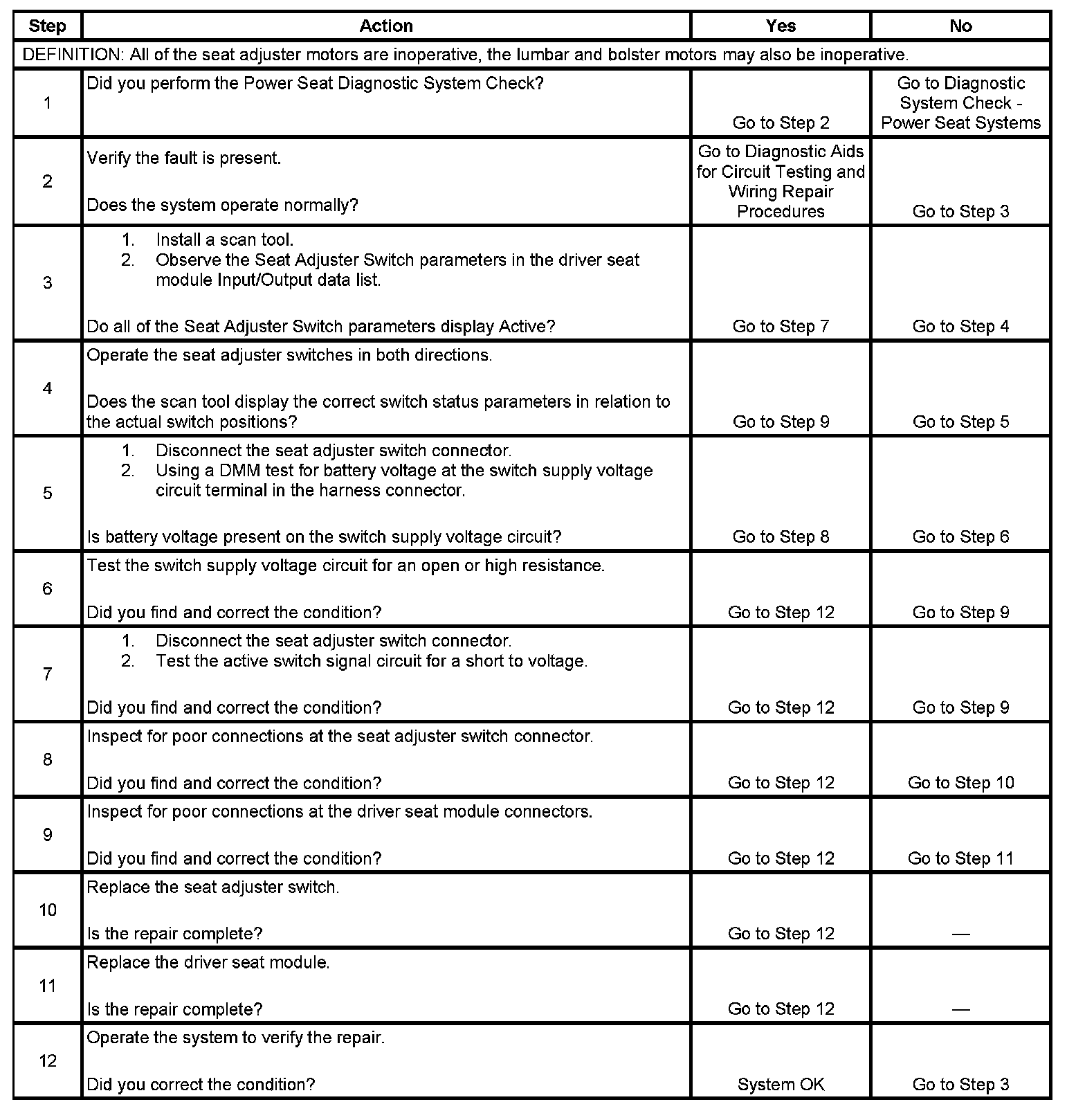 Power Seat Inoperative (with Memory)