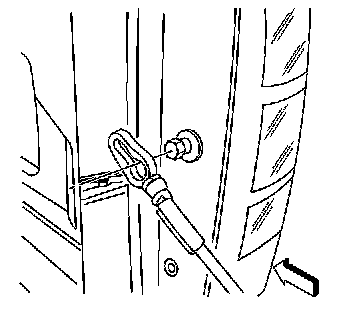 6. With an assistant, remove the endgate from the left body side hinge by sliding to the right and lifting.