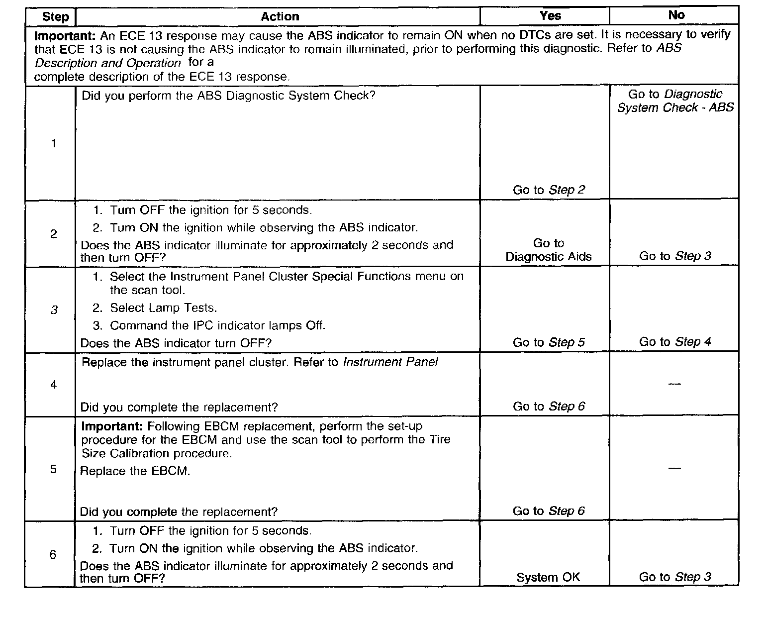 ABS Indicator Always OnTest 1-6: