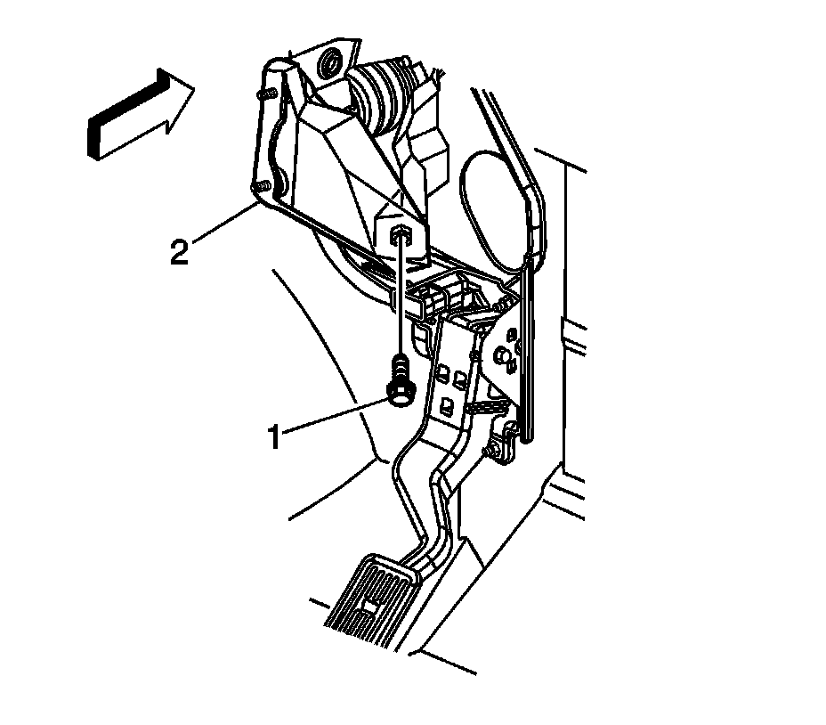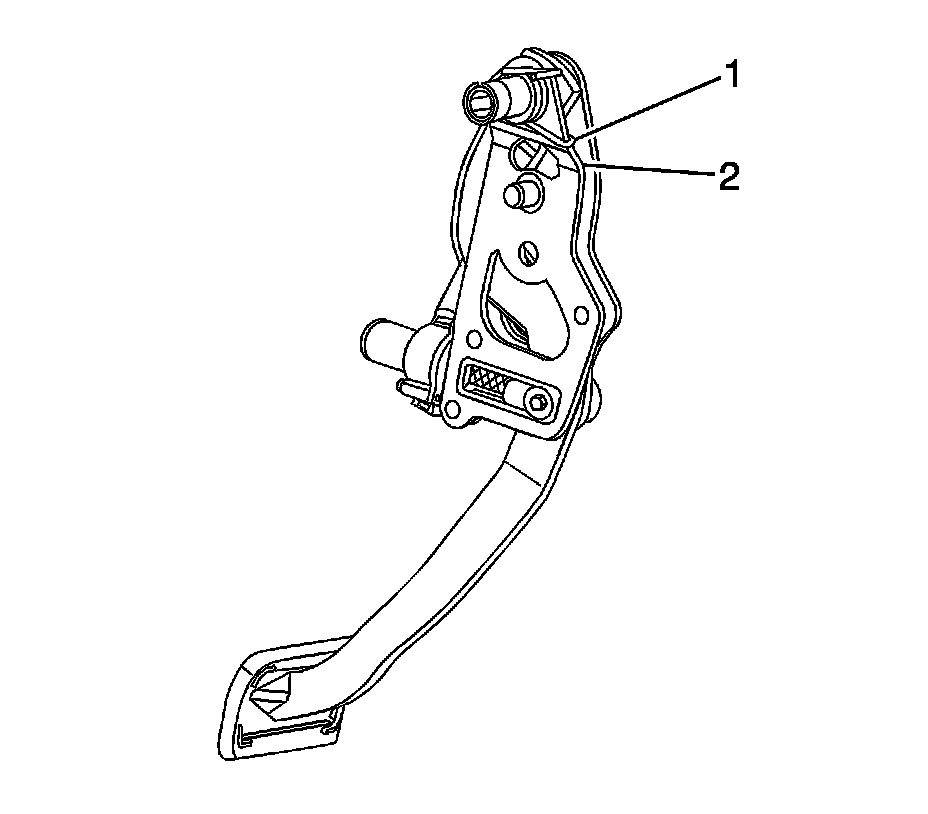 4. Hook the return spring (1) to the backside of the brake pedal assembly (2).