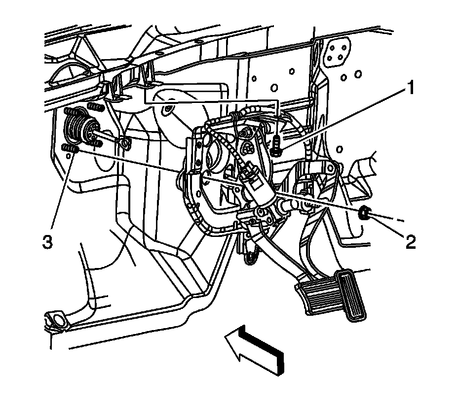 6. Remove the lower I/P reinforcement brace bolt (1) from the electronic adjustable pedal (EAP) bracket.