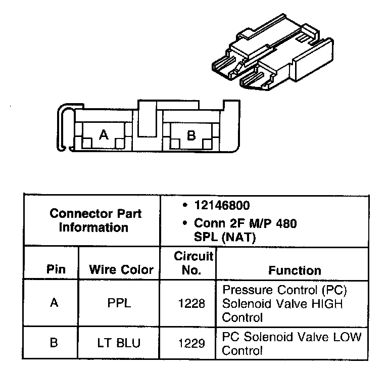 Pressure Control Solenoid Valve Connector, Wiring Harness Side