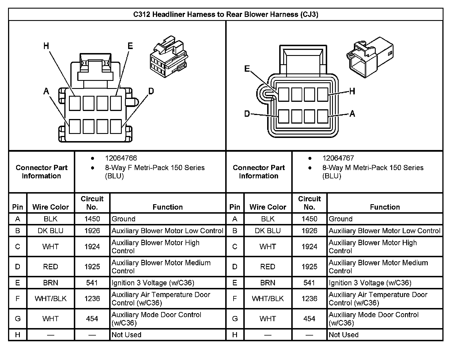 C312 Headliner Harness To Rear Blower Harness (CJ3):