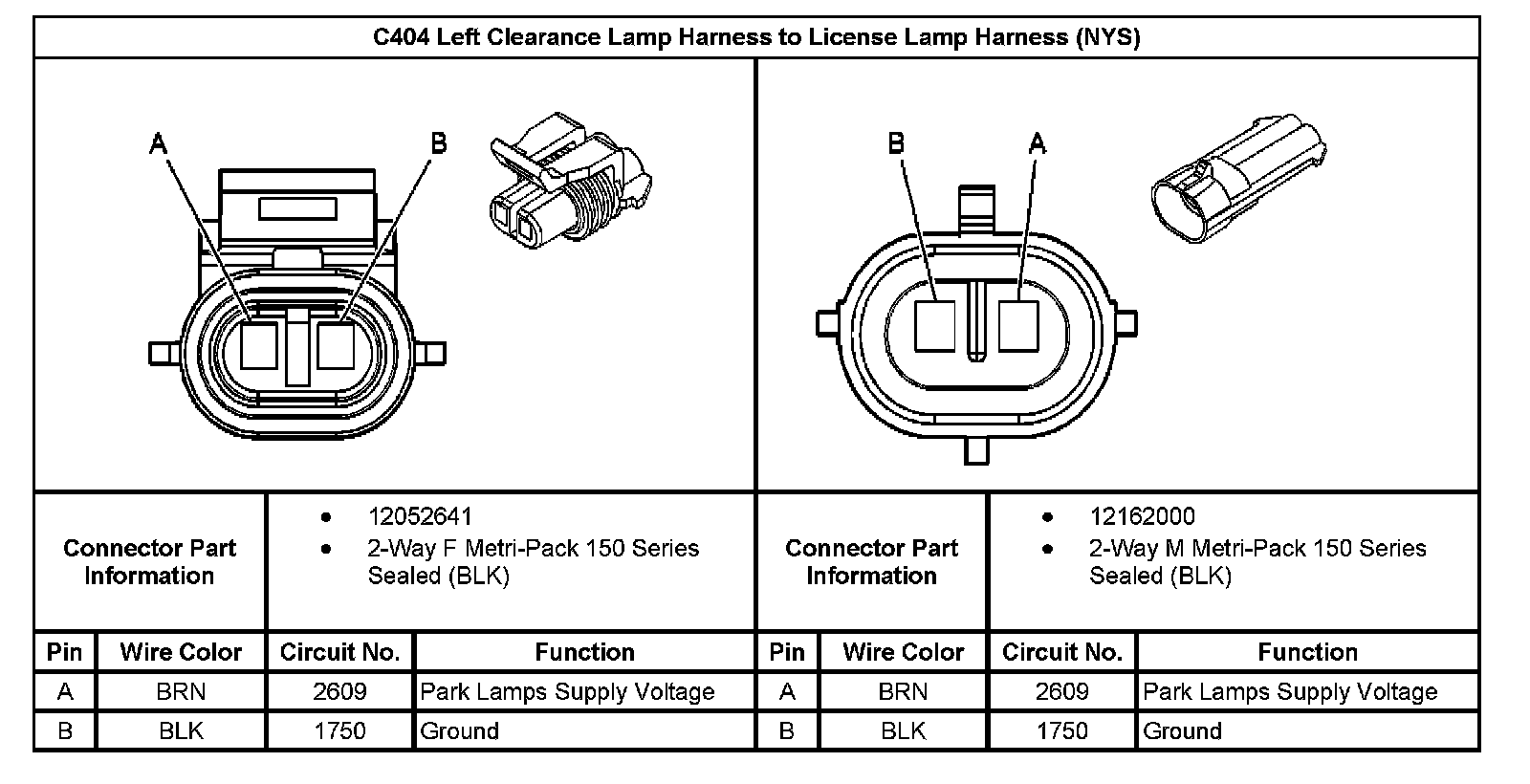 C404 Left Clearance Lamp Harness To License Lamp Harness (NYS):