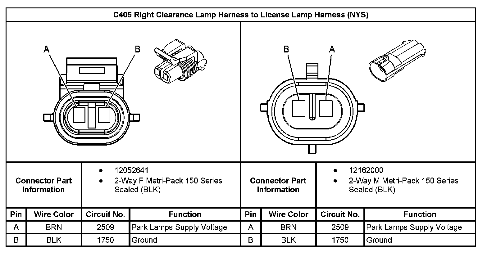 C405 Right Clearance Lamp Harness To License Lamp Harness (NYS):