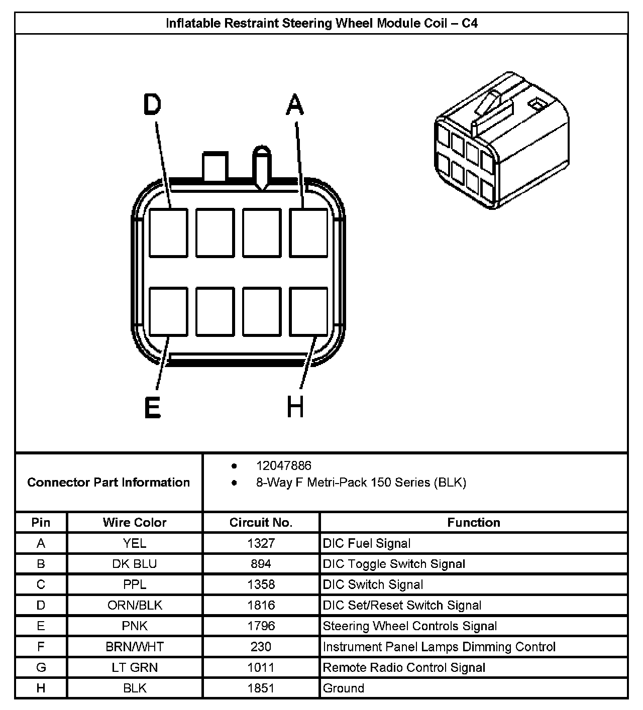 Inflatable Restraint Steering Wheel Module Coil-C4:
