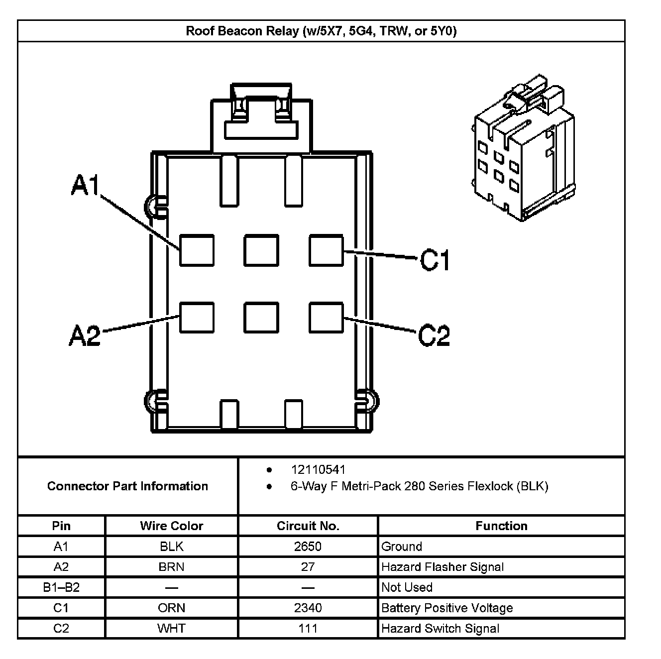 Roof Beacon Relay (With RPO Code 5X7, 5G4, TRW, Or 5Y0):