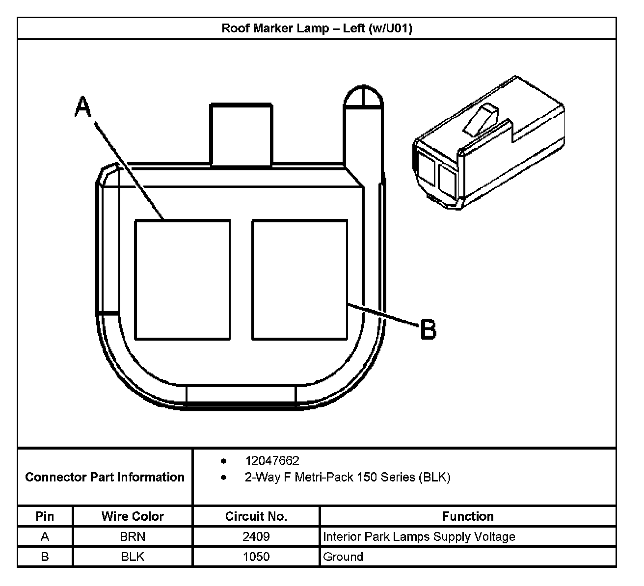Roof Marker Lamp - Left (With RPO Code UO1):
