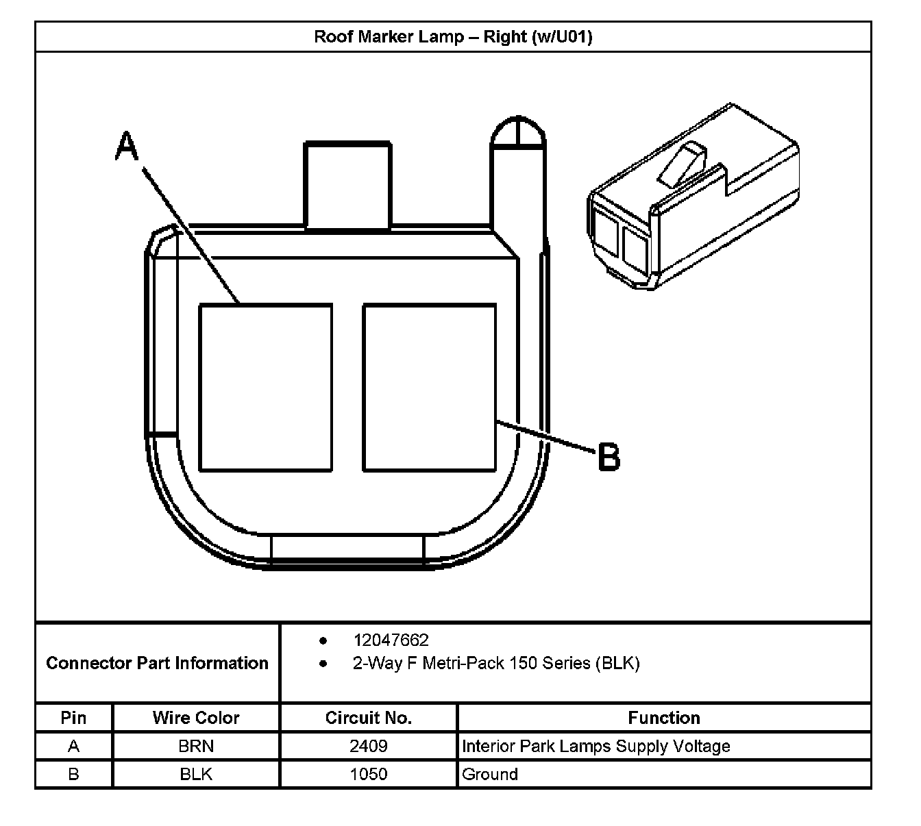 Roof Marker Lamp - Right (With RPO Code UO1):