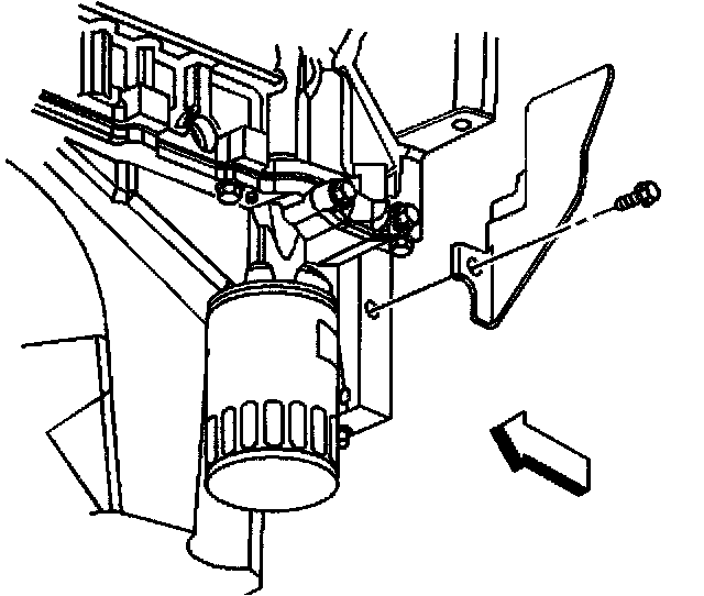 12. Slide the channel pin in to the oil pan tab.