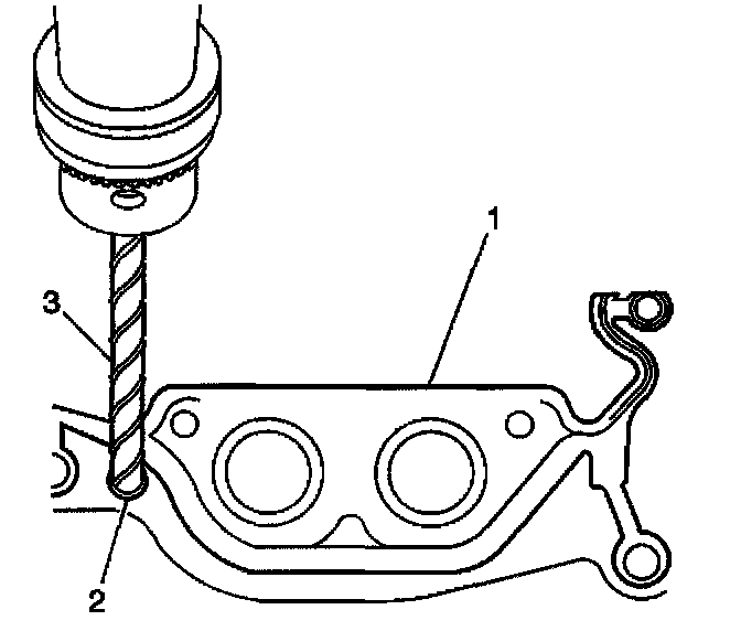 25. Drill (3) out the oil pan gasket retaining rivets (2), if required.