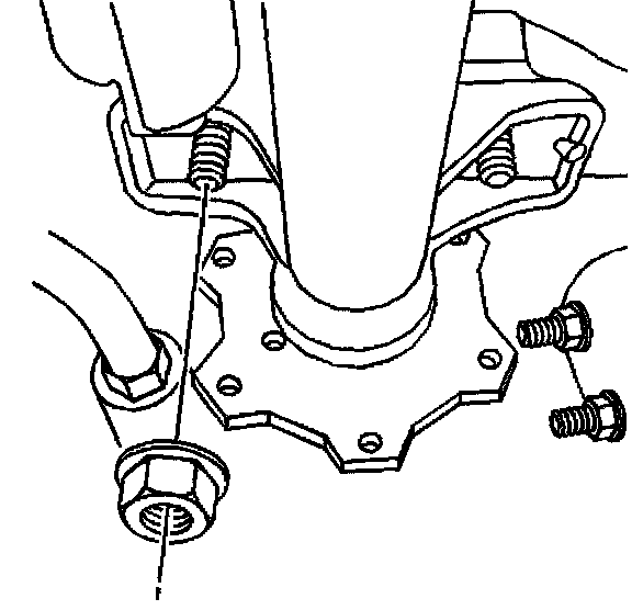 1. If equipped with Four Wheel Drive (4WD), remove the inner axle housing nuts and washers from the bracket.