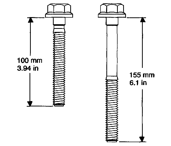 Important: First design engine blocks have different drill and tap depths using both medium length 100 mm (3.94 inch) and long 155 mm (6.1 inch) M11 cylinder head bolts. Second design engine blocks use only the medium length 100 mm (3.94 inch) bolt with a common drill and tap depth.