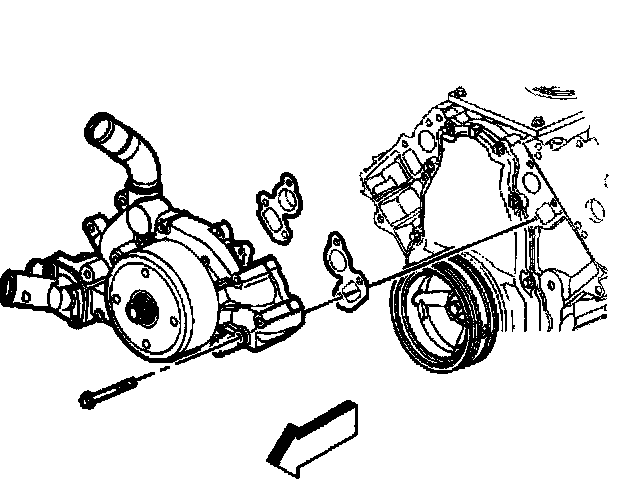 Water Pump InstallationNotice: DO NOT use cooling system seal tabs, or similar compounds, unless otherwise instructed. The use of cooling system seal tabs, or similar compounds, may restrict coolant flow through the passages of the cooling system or the engine components. Restricted coolant flow may cause engine overheating and/or damage to the cooling system or the engine components/assembly.