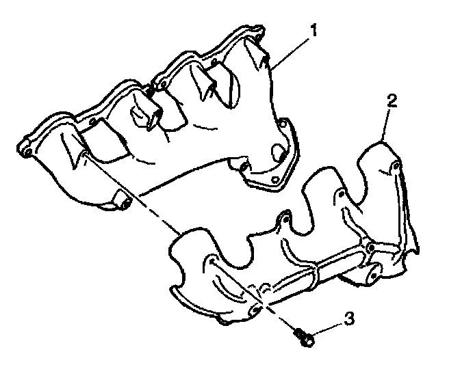 8. Remove the heat shield bolts (3), and shield (2) from the exhaust manifold (1), if necessary.