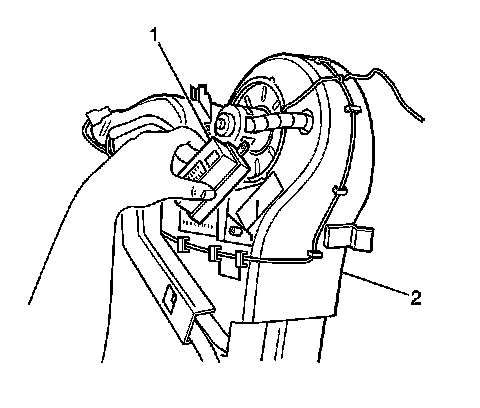 1. Install the blower motor resistor (1) to the vehicle.