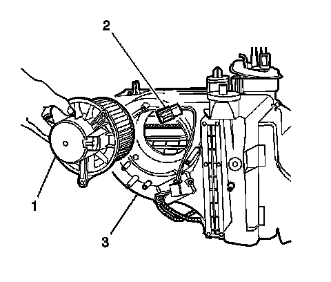 4. Remove the blower motor (1) from the HVAC module (3).