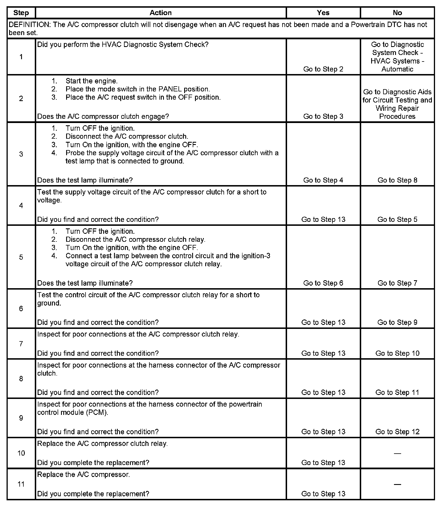 HVAC COMPRESSOR CLUTCH DOES NOT DISENGAGETEST DESCRIPTION
