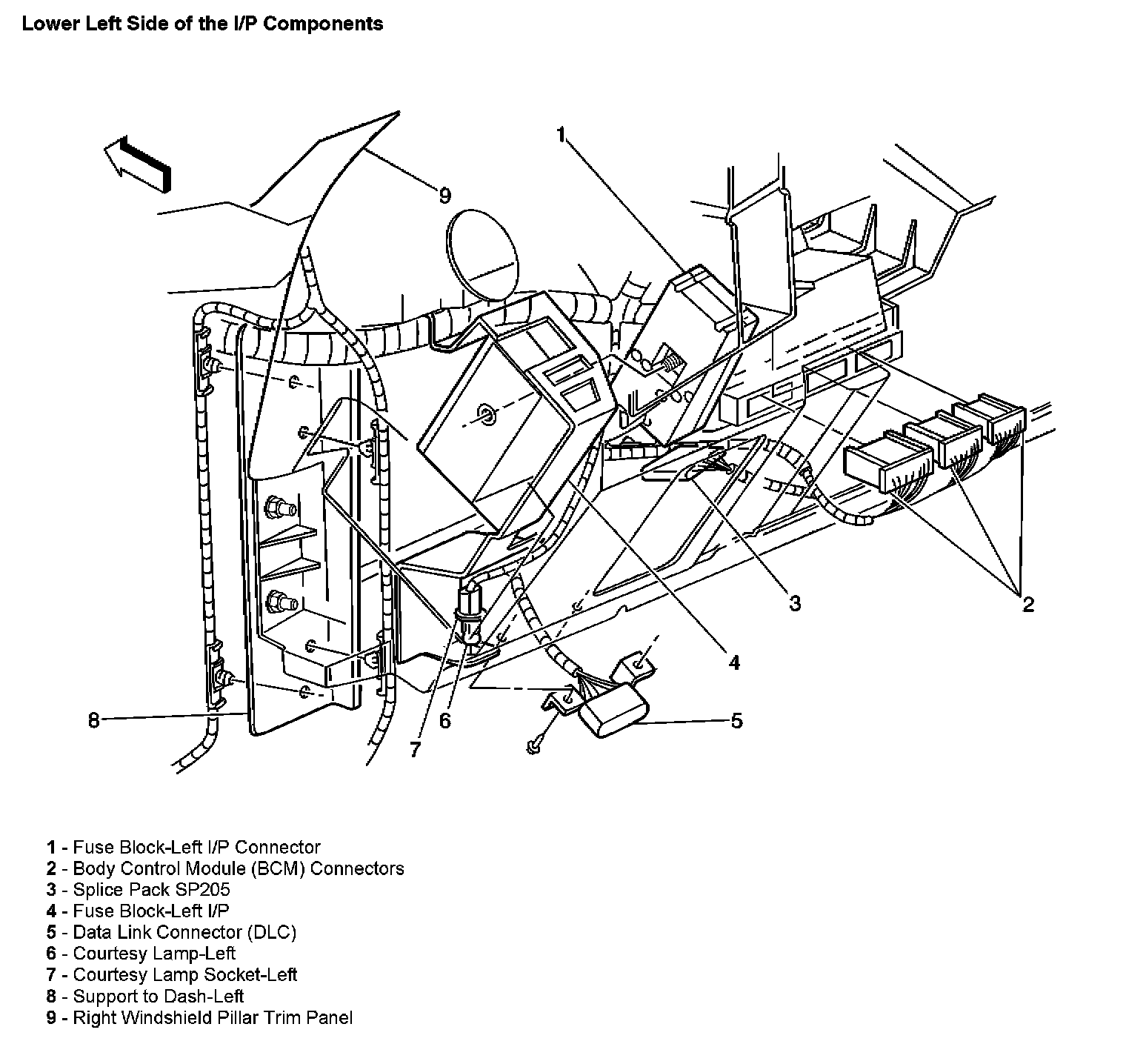 Lower Left Side Of The I/P Components: