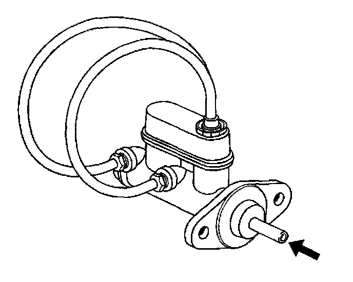 7. Using a smooth, round-ended tool, depress and release the primary piston as far as it will travel, a depth of about 25 mm (1 inch), several times. Observe the flow of fluid coming from the ports.