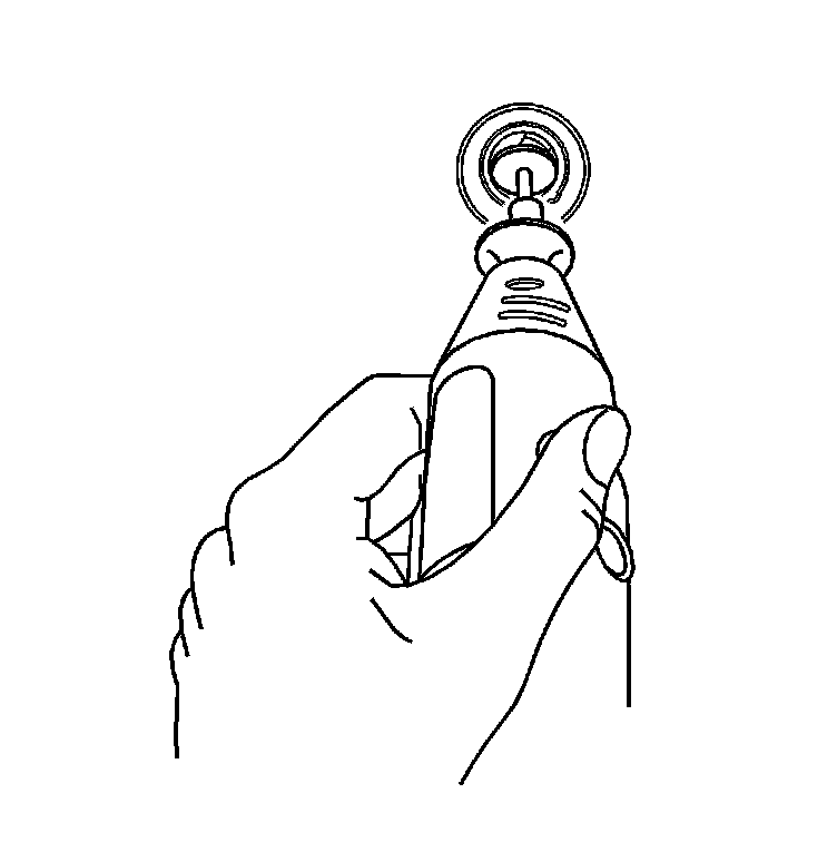 3. Insert the J 42059 into the receptacle sleeve. Tilt the tool so that the tool fits into the slots on the sides of the receptacle sleeve.