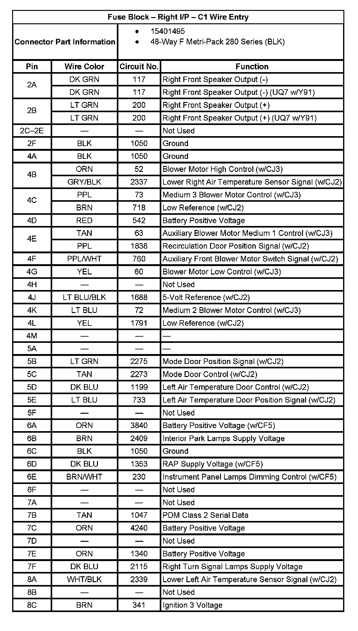 Fuse Block - Right I/P - C1 Wire Entry