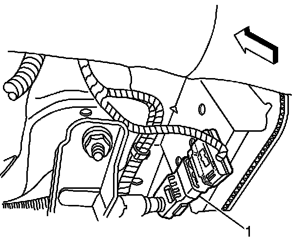 Locate the PPS sensor (1) and inspect the harness for proper routing. If the harness is pinched between the seat frame and the track/riser, use the procedure listed below to repair wire(s).