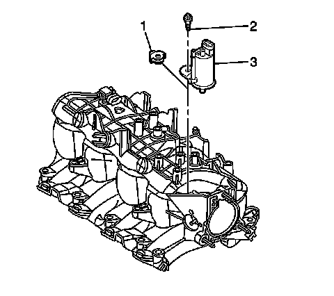5. Remove the EVAP canister purge solenoid (3) and insulator (1).