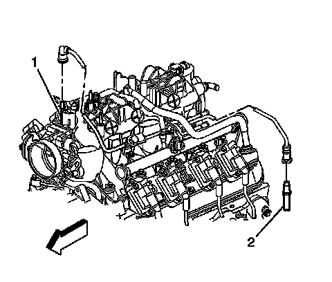 4. Remove the EVAP canister purge solenoid bolt (2).