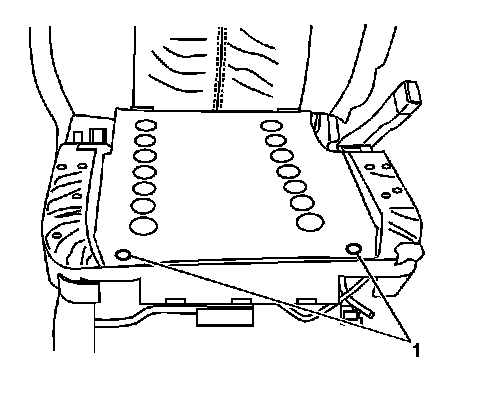 3. Remove the bolts that retain the electronic control unit (ECU) (1) from the bottom of the passenger seat cushion frame.