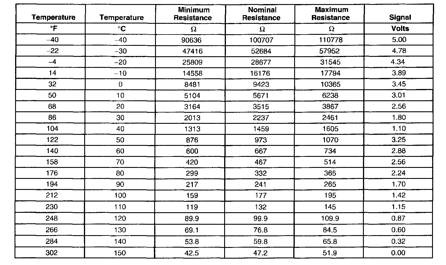 Transmission Fluid Temperature (TFT) Sensor Specifications