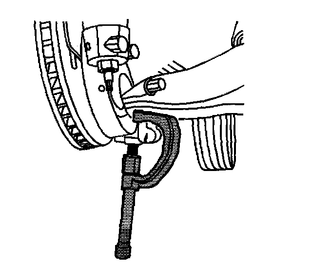 7. Remove the brake hose bracket retaining bolt from the knuckle.