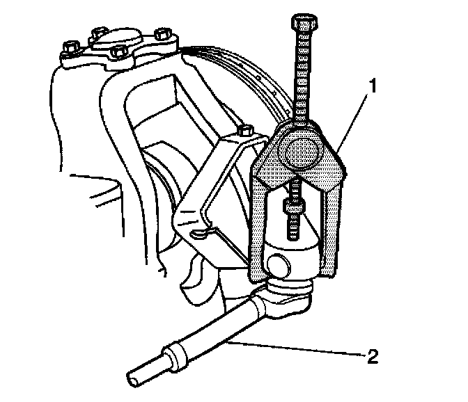 7. Disconnect the outer tie rod from the steering knuckle using the J24319-B (1).