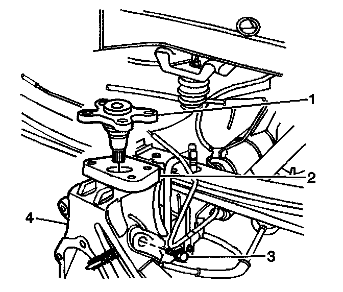 1. Install the steering knuckle (2) to the vehicle.