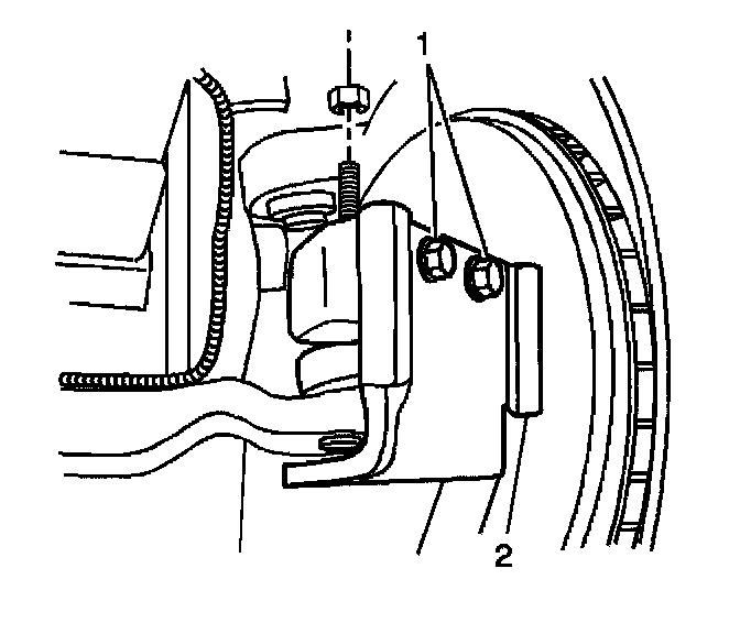 9. Remove the steering knuckle (2) from the vehicle.