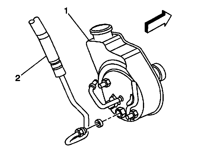 7. Install the power steering pressure hose (2) to the power steering pump.