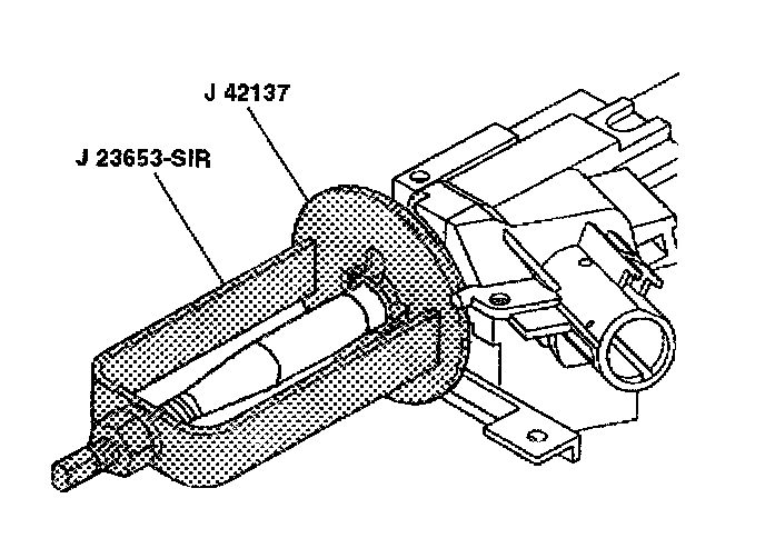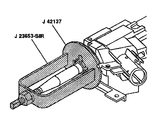 8. Remove J 23653-SIR and J 42137 from the steering column shaft assembly.