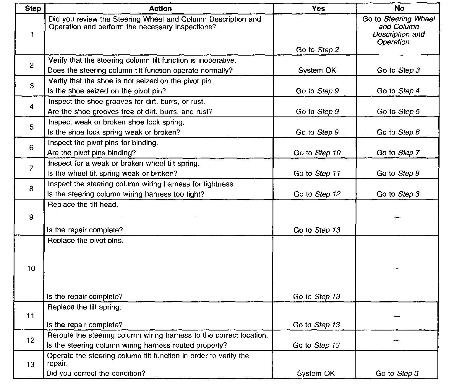 Steering Column Tilt Function Inoperative