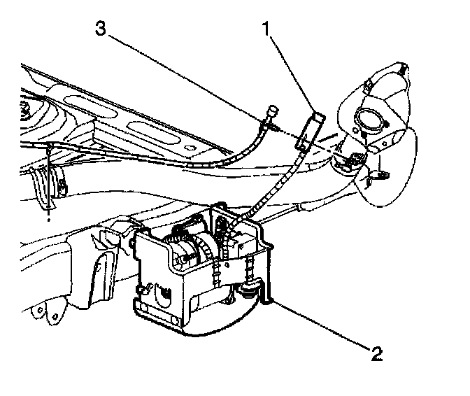 4. Remove the air inlet and hose (1) from the fuel filler neck bracket.