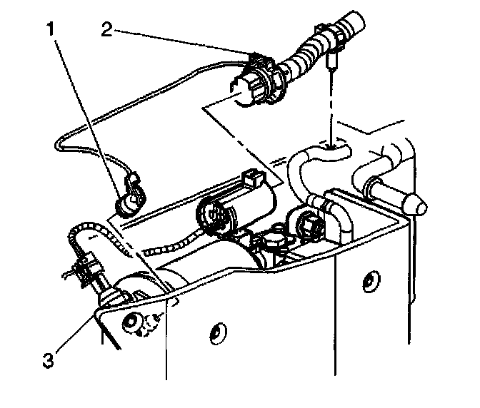 3. Install the air inlet hose (1) to the fuel filler neck bracket.