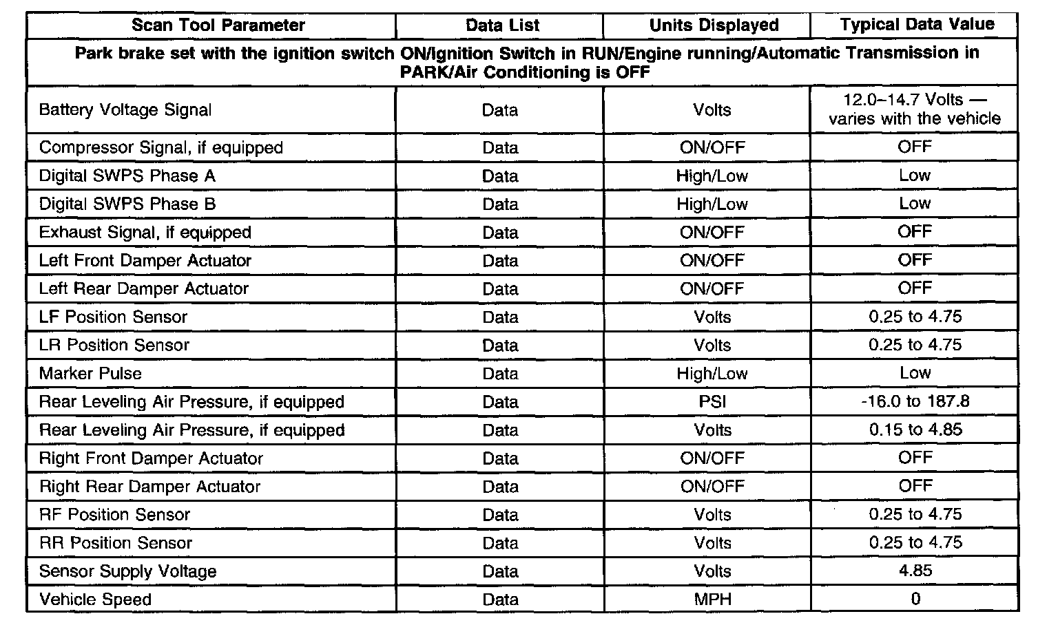 Electronic Suspension Control (ESC) Scan Tool Data List