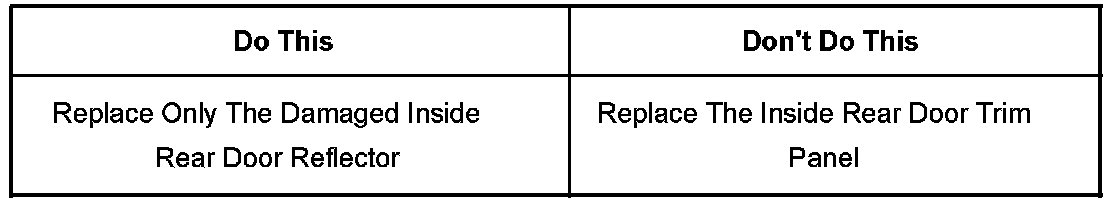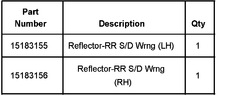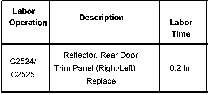 The purpose of this service bulletin is to announce that when replacement of a rear door interior trim panel puddle lamp/reflector is necessary, replace ONLY the reflector. The reflector is available separately and replacement of the complete door trim panel is not necessary. Use the applicable reflector part number listed below.