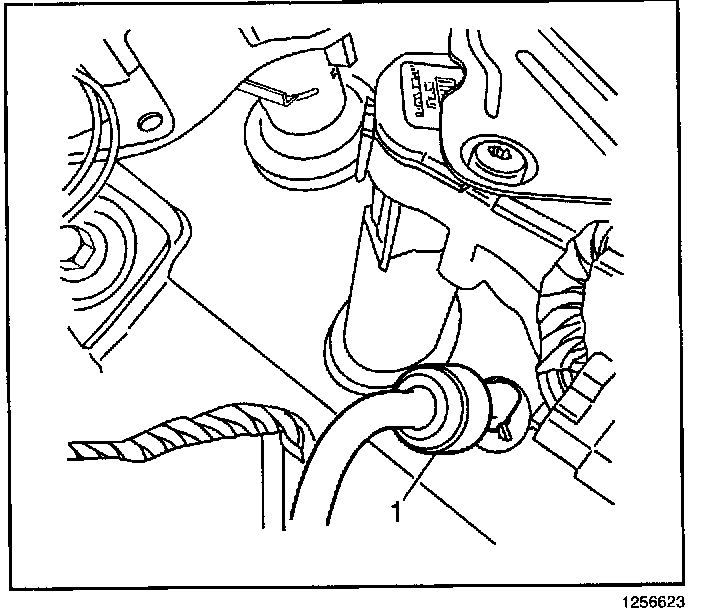 4. Install the new washer check valve (1), P/N 22102237, in place of the straight connector. Install with the arrow pointing in the direction of fluid flow.