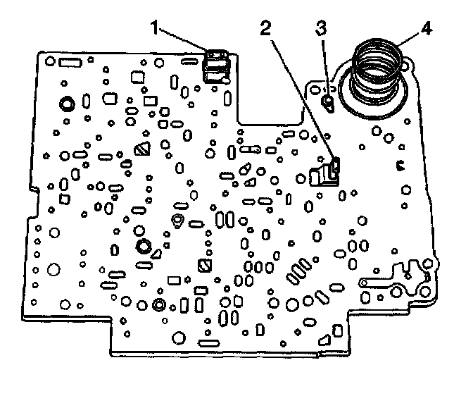 8. Place the 3-4 accumulator spring (4) on the spacer plate.