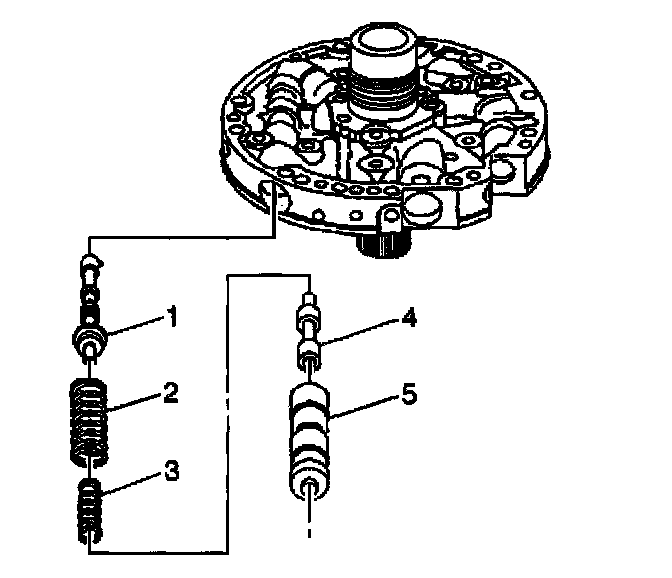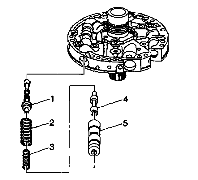 5. Remove the pressure regulator isolator spring (3) and the pressure regulator valve spring (2).