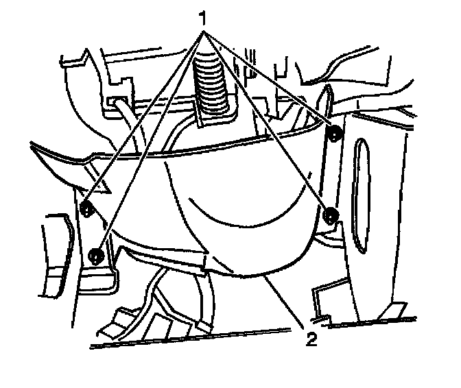 6. Remove the nuts (1) from the knee bolster deflector bracket